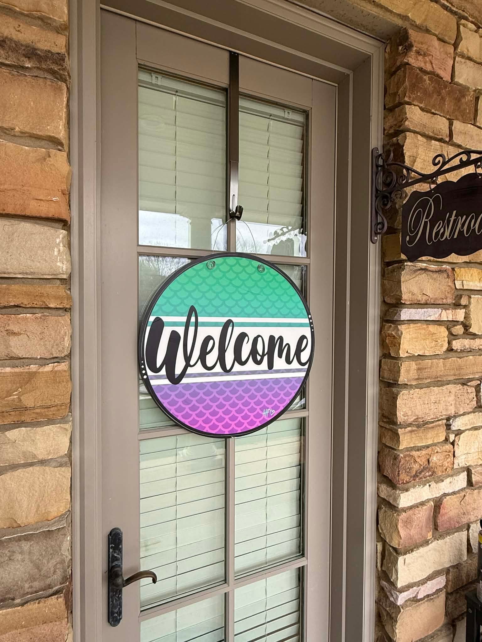 This mermaid door hanger brings all the coastal magic right to your front door 🧜♀️🌊 with dreamy teal and lavender scales that feel like a sunset over the sea and bold lettering that pops beautifully against the shimmer inspired background, making it the perfect statement piece for beach lovers, mermaid fans, or anyone who wants their porch to feel a little more enchanted 💜✨