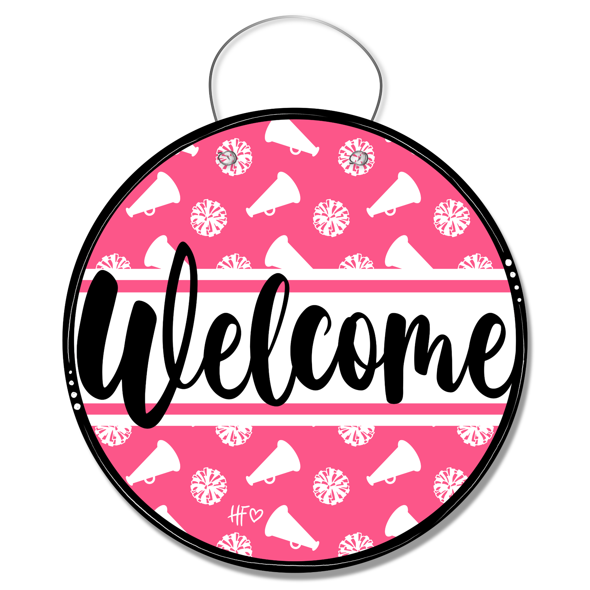 This round cheer “Welcome” door hanger is pure sideline sparkle, bringing bold pink energy and megaphone-and-pom flair straight to your front porch 📣💖✨; with its eye-catching script and all-over cheer print, it’s perfect for competition season, game nights, and proud cheer families who love to show their spirit before guests even ring the doorbell 🏡🎀🔥