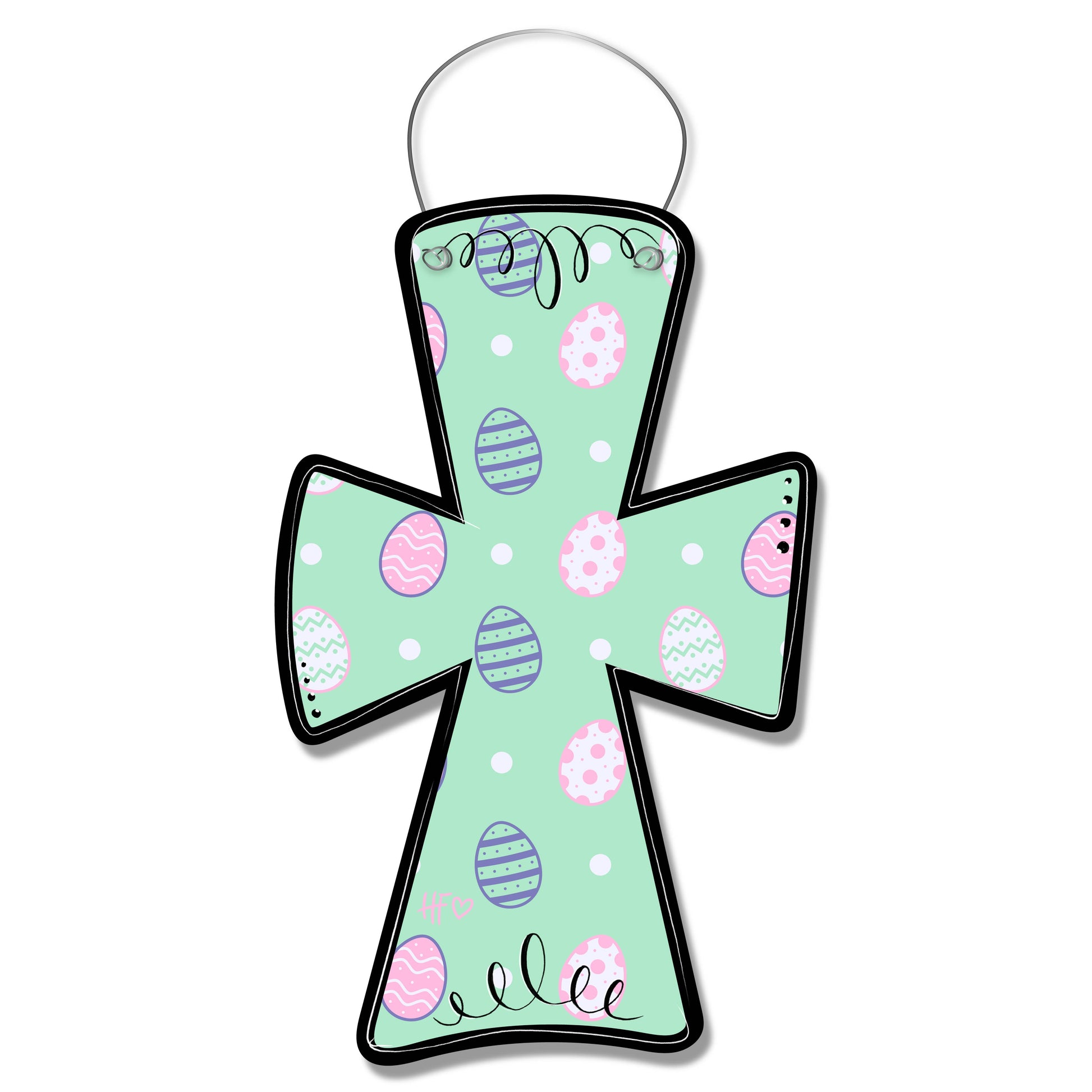 This Easter egg cross is the sweetest blend of faith and fresh spring charm 🌸✝️ The soft mint background feels light and airy, while the pastel eggs in pink and lavender add a playful, joyful touch that keeps it festive without overpowering the meaning. The bold black outline frames the shape beautifully, making it stand out from the street while still feeling soft and welcoming, perfect for a home that celebrates the season with both resurrection hope and a little pastel fun.