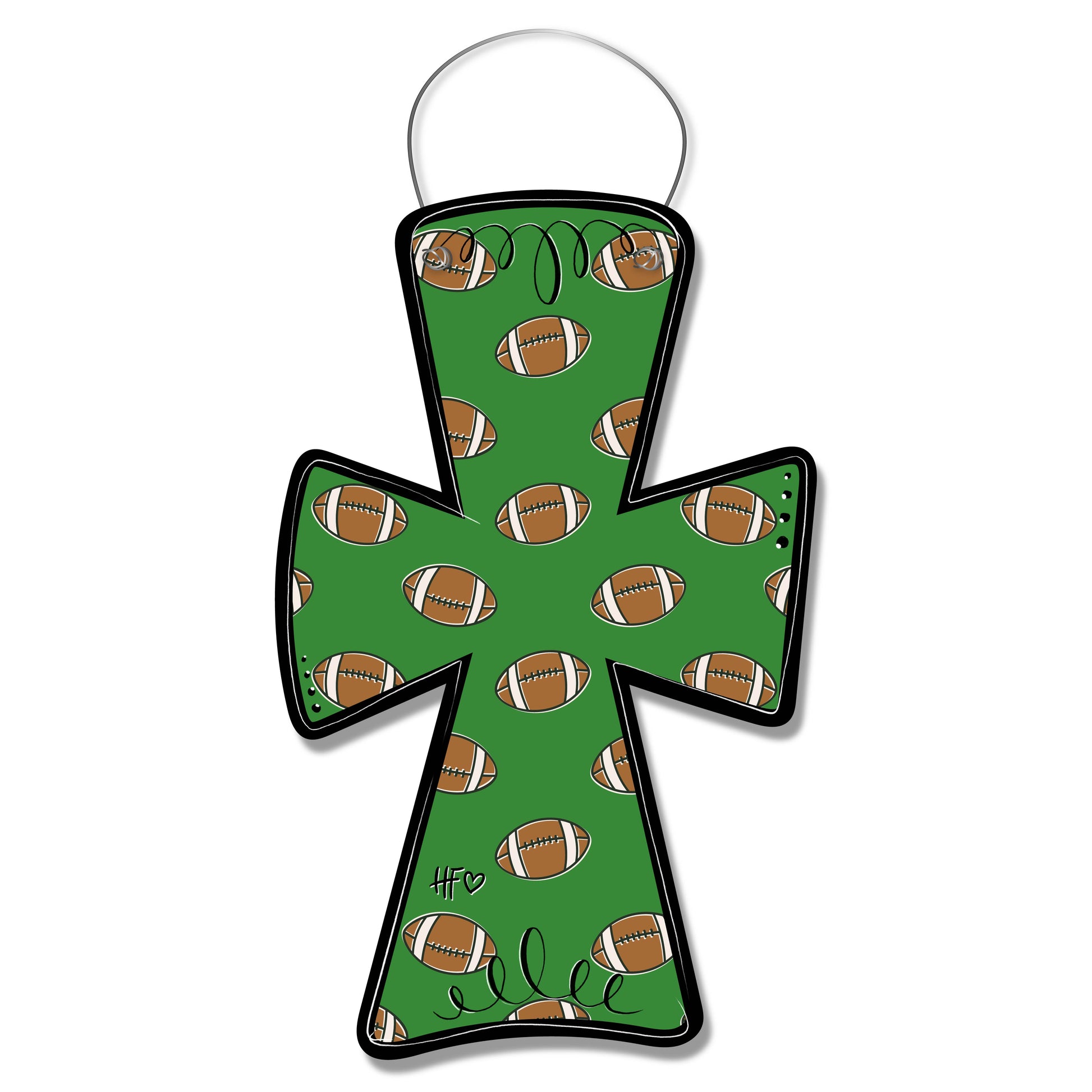 This Football Cross Door Hanger blends faith and Friday night lights in one bold design. Set against a vibrant green backdrop with scattered footballs, itâs sporty, spirited, and full of game day pride. Framed in a crisp black outline, itâs the perfect piece for a home where faith runs deep and football runs the weekend. đâïž