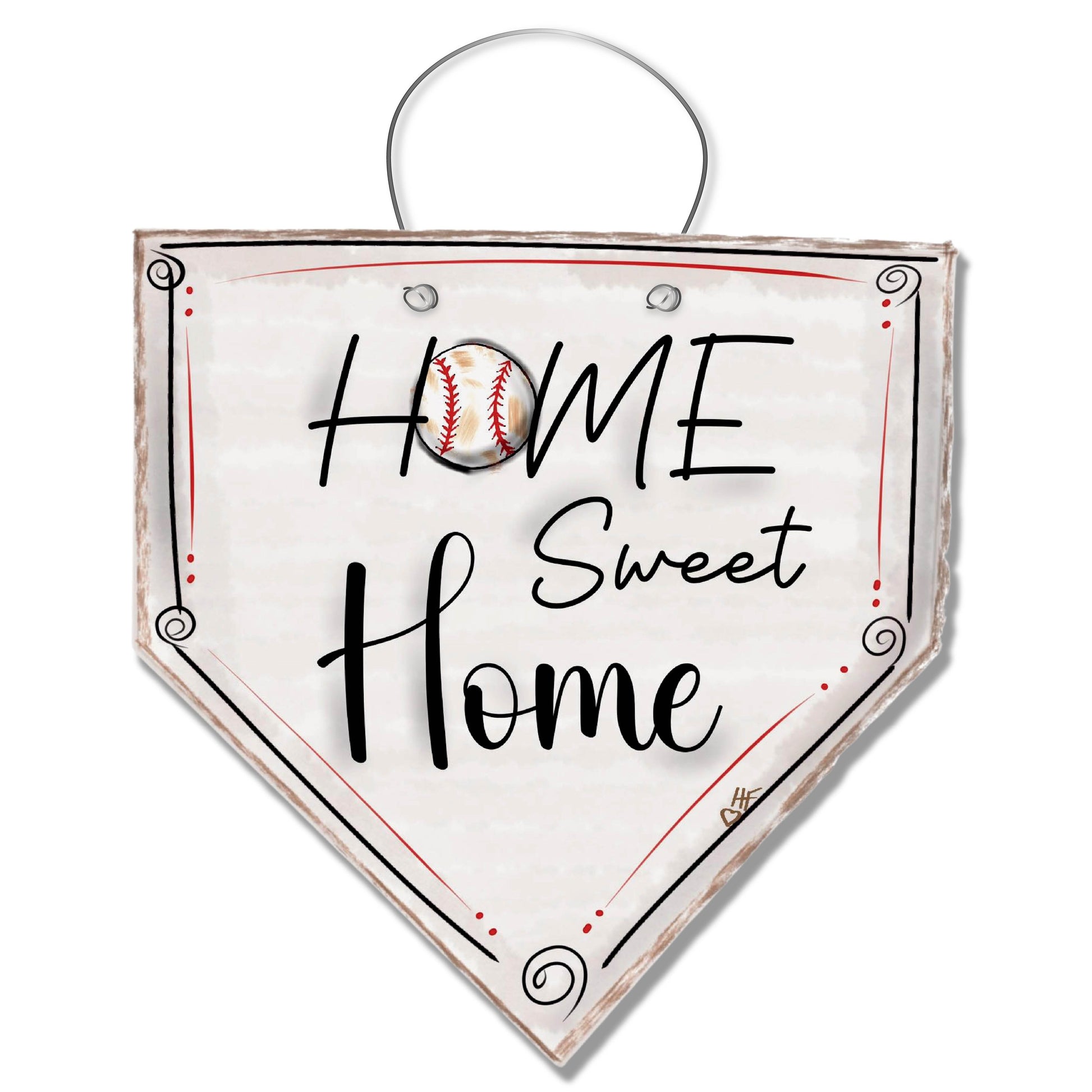 A grand slam for your front door ⚾🏡 This “Home Sweet Home” design blends classic farmhouse charm with all-American ballpark nostalgia, featuring a vintage-style home plate silhouette and a perfectly placed baseball that steals the spotlight ❤️ The subtle red detailing and clean black script give it that timeless, cozy feel—like summer evenings, dusty cleats, and cheering from the bleachers 🌞✨ It’s warm, welcoming, and made for families who know that the best home runs always happen right at home 💙
