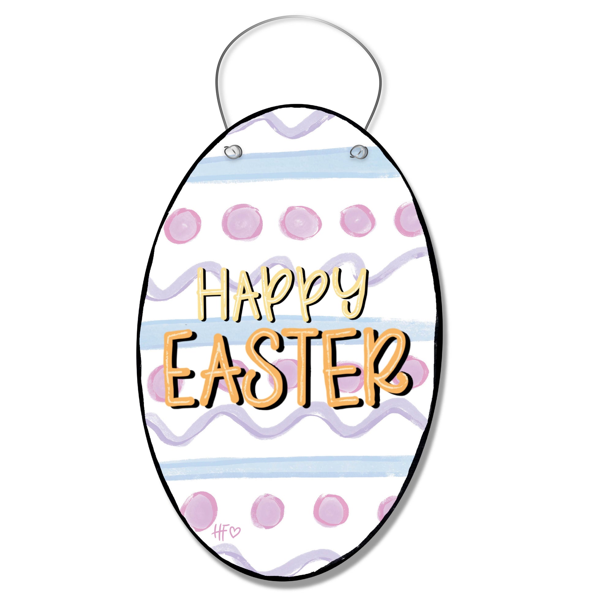 Soft as sugared marshmallows and dressed in airy pastels, this Happy Easter egg door hanger feels like springtime wrapped in a ribbon 🎀🌸 Delicate lavender waves, powder blue stripes, and playful blush dots dance across a crisp white backdrop, while the cheerful golden lettering adds just the right pop of sunshine ✨🐣 It’s sweet, bright, and effortlessly charming—perfect for welcoming guests with a little pastel party magic all season long 🌷🥚