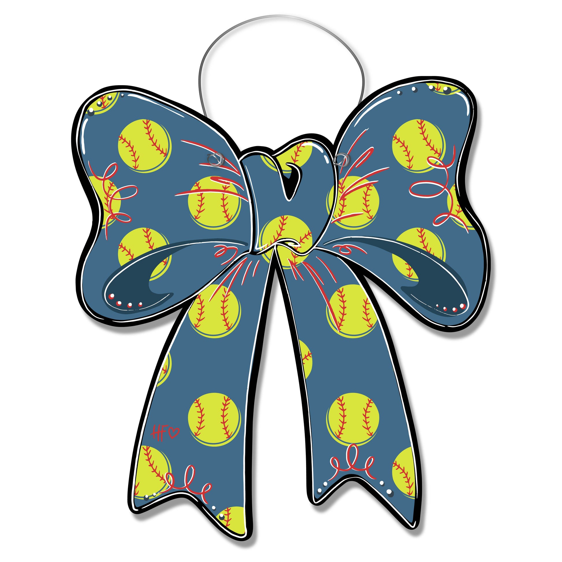 This softball bow is full-on field energy with a polished front porch twist 🥎🎀 The deep slate background makes the neon yellow softballs pop like stadium lights at golden hour, while the bold black outline keeps everything crisp and clean from a distance. It feels competitive yet cute, sporty but still totally door-worthy, perfect for the home where cleats pile up by the door and game days are basically holidays.
