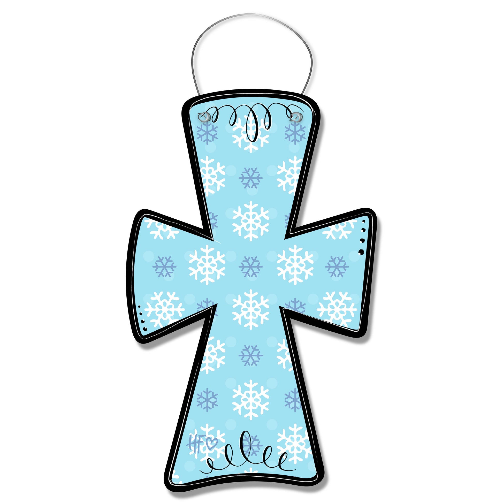 This snowflake cross feels like a quiet winter hymn in design form ❄️ The soft frosted blue backdrop layered with crisp white and cool periwinkle snowflakes gives it a peaceful, seasonal charm, while the bold black outline keeps it clean and striking against any door color. The subtle dotted accents and delicate swirl details at the top add just enough personality without overpowering the simplicity of the shape. It’s festive yet serene, making it a beautiful way to carry a winter theme while still keeping a faith-forward focal point all season long.